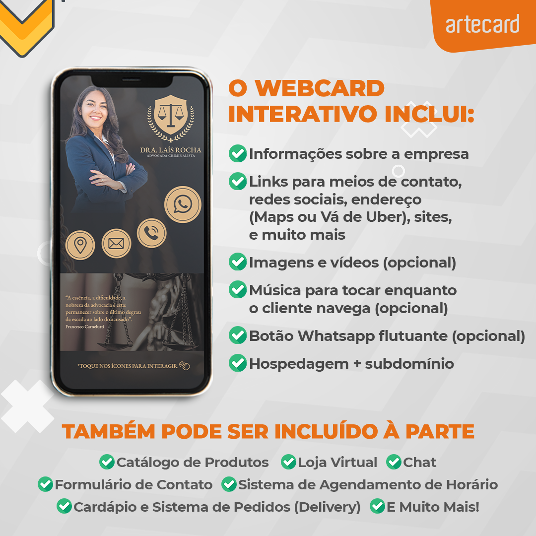 O WebCard Interativo é para todos os profissionais que desejam se destacar no mercado, facilitando a cominicação com o cliente, garantindo seu espaço no meio digital e aumentando suas vendas.